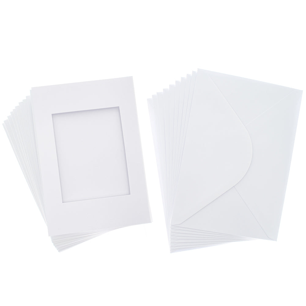White aperture card blanks featuring a neatly cut rectangle window — ideal for framing photos, cross‑stitch, embroidery, die‑cuts and other paper‑craft designs. This classic two-fold card is made from quality cardstock for a crisp, professional finish. Supplied in a Pack of 10 with matching envelopes. Perfect for handmade window greeting cards, wedding invites, thank‑you notes and keepsake projects. Popular with card makers, hobbyists and craft businesses.