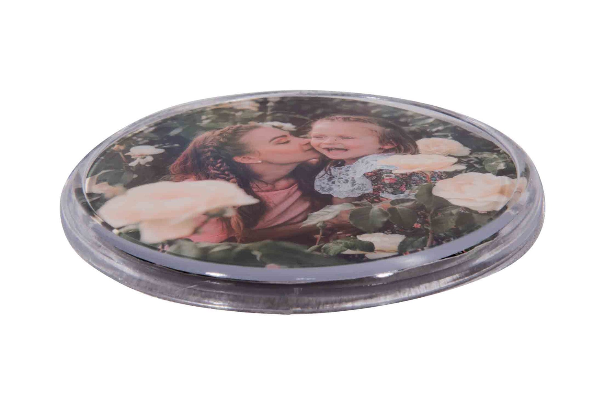 Clear plastic British made 2 part square coaster. Simply cut your photograph or artwork to fit, snap the bottom into place and there you have your own custom made coaster. Dimensions overall: 86mm x 7mm thick with a lip to stop drips, insert: 80mm diameter.
